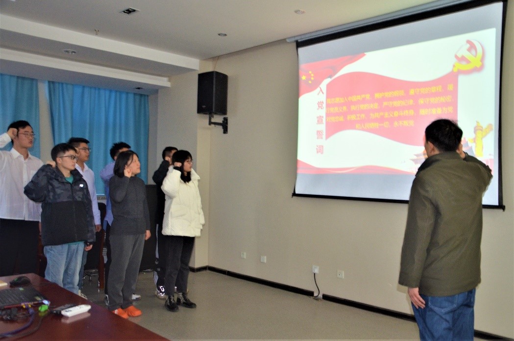 7名同志返回会场,马薇同志向他们宣读支委会同意接受他们为预备党员的决定。预备党员由支部书记何力军同志领誓,宣读入党誓词。大家对新同志的加入表示热烈的祝贺。7位同志依次作表态发言,表示感谢组织的信任和培养,未来将更加严格要求自己,发挥好先锋模范带头作用,努力学习,做一名合格的共产党员。何力军同志代表党支部对几位同志提出了期望和要求,希望他们能知行合一,做好肩使命、担大任的思想和能力准备,早日成为政治可靠、业务过硬的新时代的建设者和接班人。