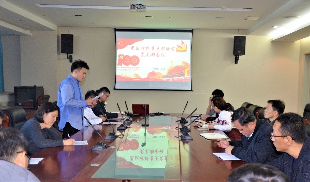 2021年12月6日,宁夏光伏材料重点实验室党支部在科技楼A601会议室召开支部大会,讨论接收发展对象为预备党员事。会议由支部组织委员马薇同志主持,全体在岗党员参加,与会人数符合党章要求。