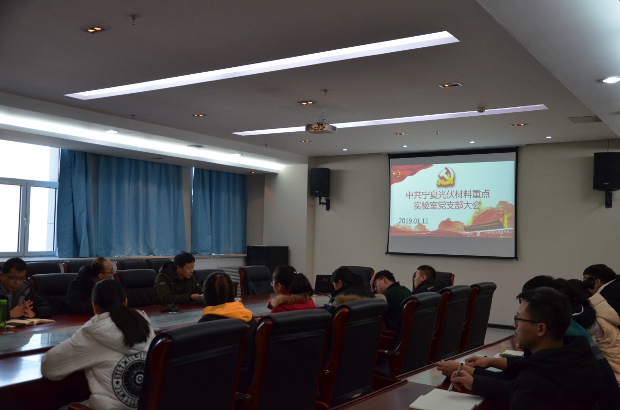 2019年1月11日上午,中共宁夏光伏材料重点实验室党支部召开支部大会,专题学习传达《共产党员不准信仰宗教和参与宗教活动若干规定(试行)》、《自治区党委办公厅关于认真学习宣传和贯彻落实《中国共产党支部工作条例(试行)》的通知》和性吧