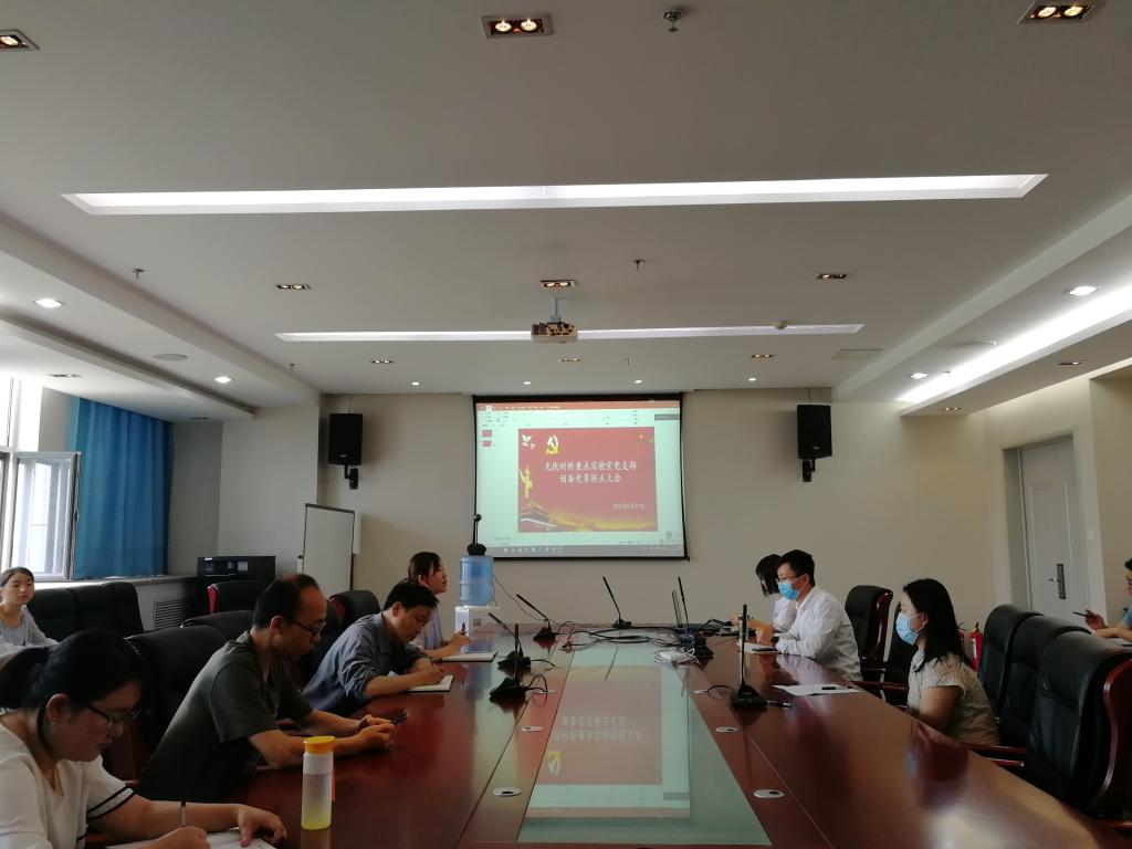 2020年6月19日上午9时,中共光伏材料重点实验室党支部在科技楼A601会议室召开支部大会,讨论预备党员苏杭、谭婉婷、冯州三位同志转正问题。在校全体师生党员参加,未返校党员通过视频连线参加会议。会议由支部组织委员马薇同志主持。