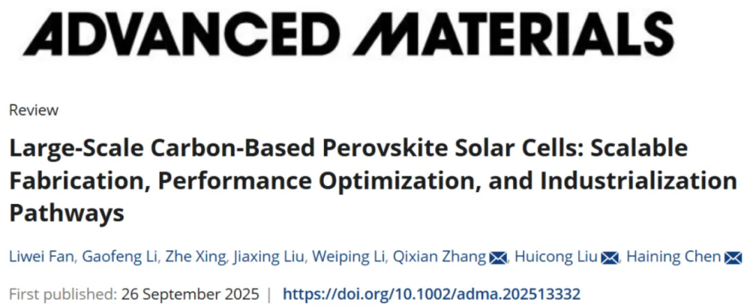 张啟先副教授与北京航空航天大学陈海宁教授、刘慧丛副教授合作,在国际著名期刊Advanced Materials上发表了题为“Large-Scale Carbon-Based Perovskite Solar Cells: Scalable Fabrication, Performance Optimization, and Industrialization Pathways”的高水平综述文章。北京航空航天大学、性吧