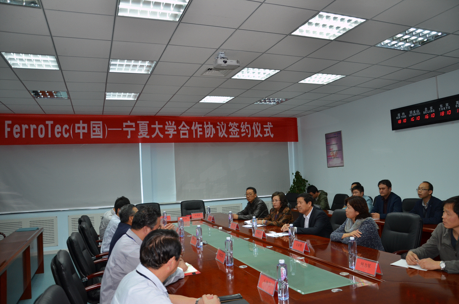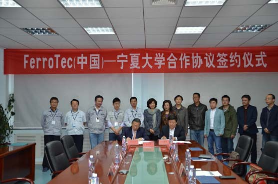 2015年10月10日,何建国校长与Ferrotec(中国)总裁贺贤汉在宁夏银和新能源科技有限公司签署性吧 与Ferrotec(中国)合作协议。王春秀副校长、宁夏银和新能源科技有限公司总经理浩育洲参加了签字仪式。出席仪式的还有宁夏光伏材料重点实验室主任李进、副主任何力军、实验室科研骨干及企业方主要部门负责人等。