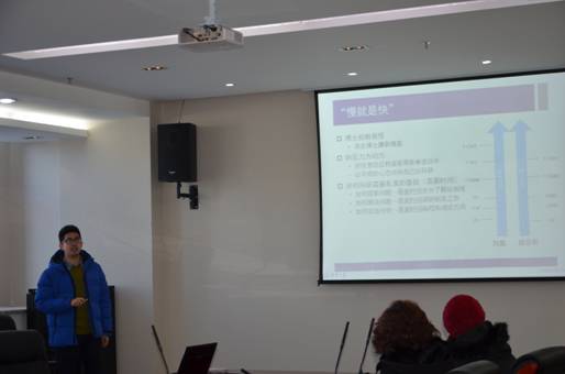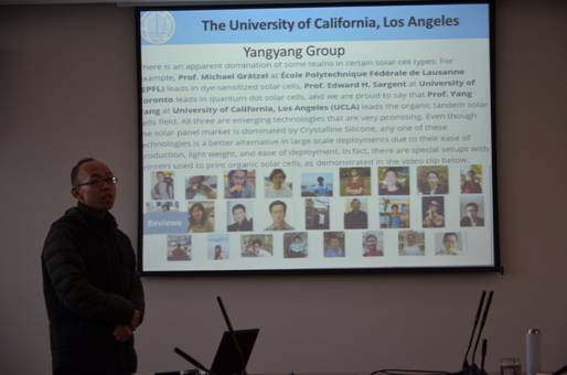 实验室教师李国龙博士、杨佩佩博士、马薇博士、李普博博士分别以“UCLA访学见闻”、“空心钴基材料的制备及其吸波性能研究”、“太阳能电池界面电子结构与宏观性能关系的第一性原理研究”、“粉末触变成形制备SiCp/Al、Ti@Al3Ti/Al复合材料的研究”为题,介绍了相关研究的背景、研究方法和预期前景,以及国际著名大学的学术氛围和研究环境。活动特别邀请到清华大学刘昊博士与师生交流科研体会,分享科研经验,刘博士在图像识别等计算机应用领域成果丰硕。