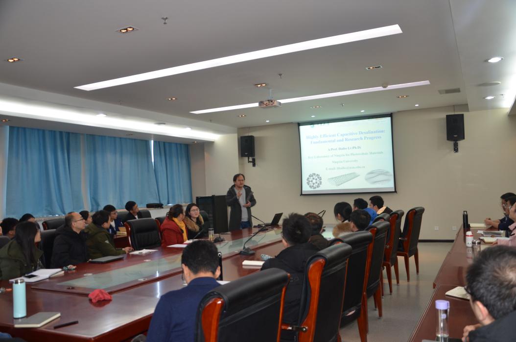 杨佩佩博士对樱花计划及参加日本岛根大学学术交流活动进行了总体介绍。李海波副教授做了关于高效电容脱盐的研究报告;郜铁、高昂、孟媛、蒙镜蓉等4名硕士研究生分别以对自己的课题为基础进行学术报告,所有5场报告均为英文讲述。需要说明的是,这5场报告也是我实验室师生参加樱花计划在日本岛根大学开展学术交流所做报告的一部分。