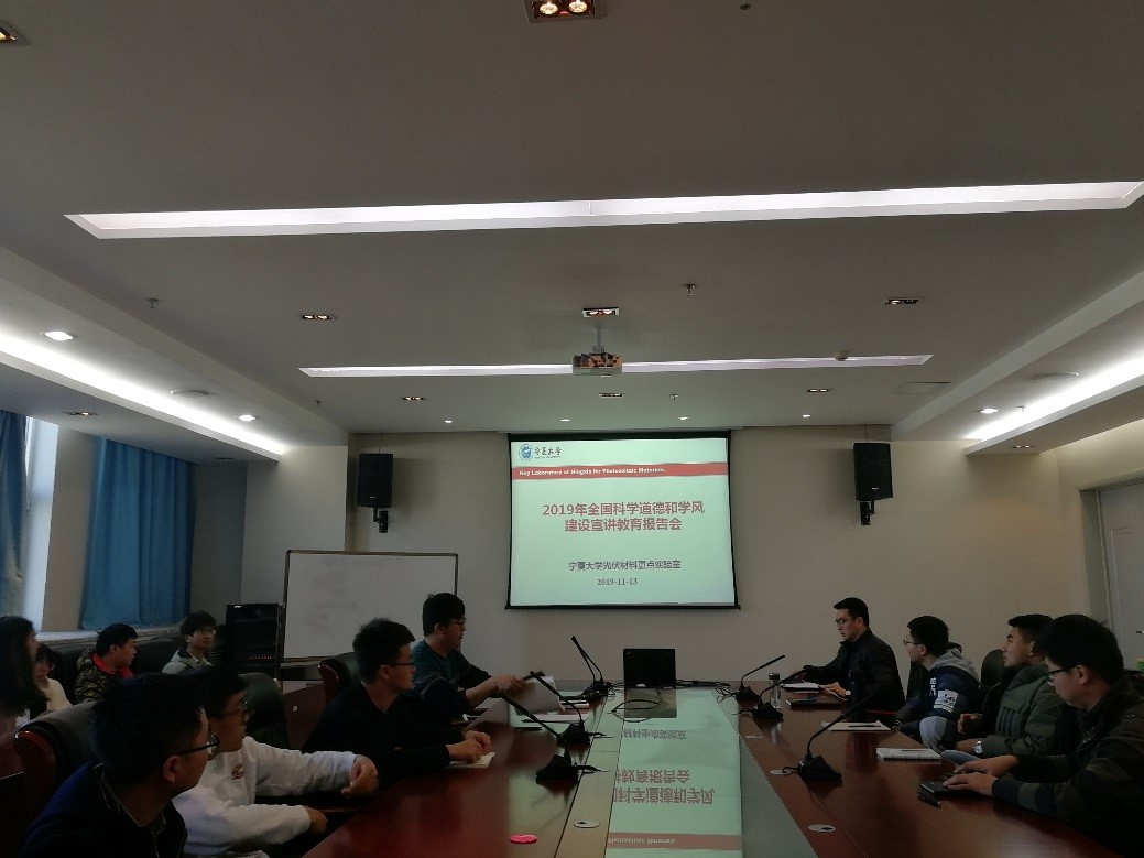 为认真学习贯彻习近平新时代中国特色社会主义思想和习近平总书记关于科学道德和学风建设重要指示精神,加强学术道德和学风建设,按照研究生院要求,2019年11月13日下午,我实验室组织全体研究生在科技楼A610会议室收看《2019年全国科学道德和学风建设宣讲教育报告会》直播。