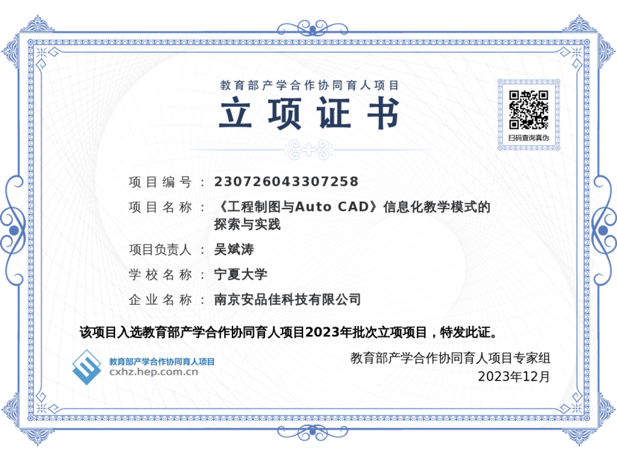 日前,教育部发布2023年度产学合作协同育人项目立项公告,性吧 吴斌涛老师的《工程制图与Auto CAD信息化教学模式的探索与实践》通过审批。