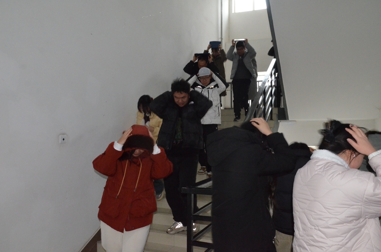 《关于举办校园防震减灾培训讲座暨地震应急演练活动的通知》(保卫处〔2025〕2号)要求,3月6日,学院联合校保卫处开展地震应急疏散演练。校保卫处安全管理中心张鹏举主任到场指导,全院师生参与。