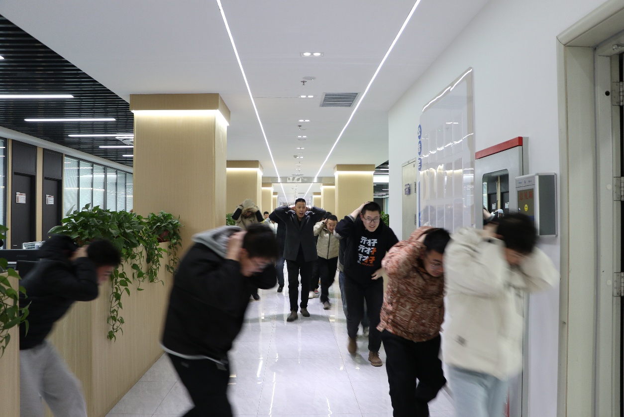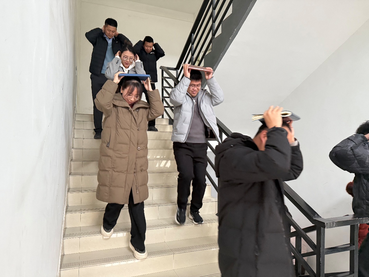 随着警报拉响,全体师生即刻进入应急状态,迅速响应,用书本护头,按照既定疏散路线,俯身、疾行向安全区域转移,迅速、有序在指定区域完成集合。张鹏举主任对撤离速度、队列秩序及避险动作规范等演练情况进行了细致复盘,并深入浅出地讲解了避震知识与逃生要点。