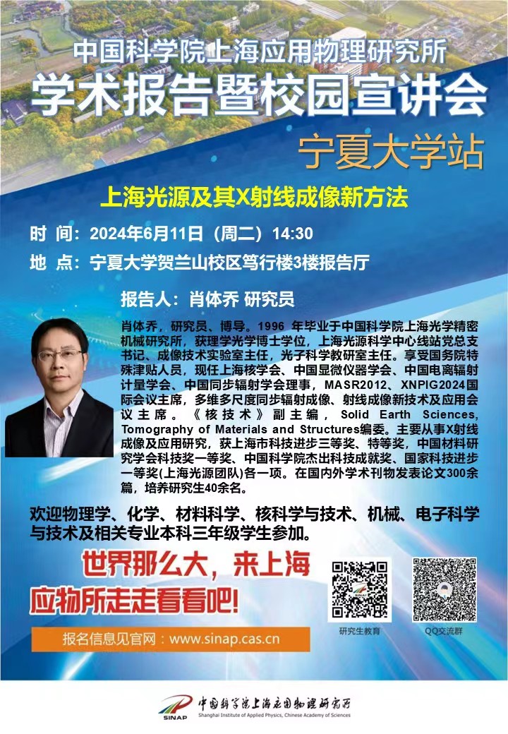中国科学院上海应用物理研究所学术报告暨校园宣讲会(2024年6月11日14:30)