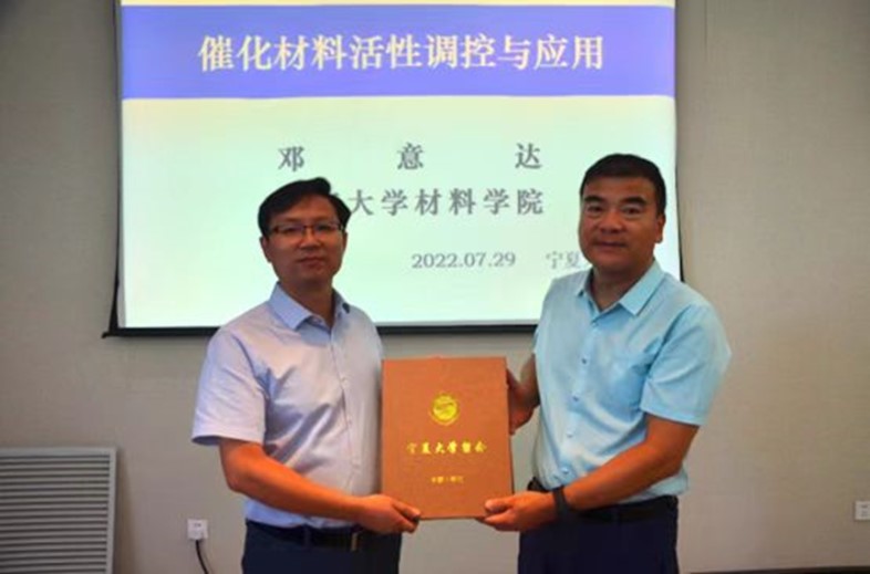 2022年7月29日上午,应学院邀请,海南大学材料科学与工程学院邓意达教授在贺兰山校区科技楼A610会议室作了题为“催化材料活性调控与应用”的学术报告。报告会由副院长李海波同志主持,学院全体师生,及化学与化工学院、物理与电气工程学院等相关领域的师生聆听了报告。