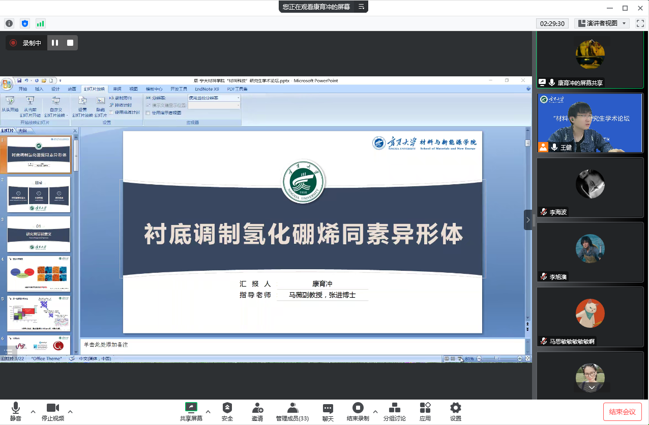 下午为研究生报告专场,主题分别为“新能源材料”和“先进材料”。来自性吧