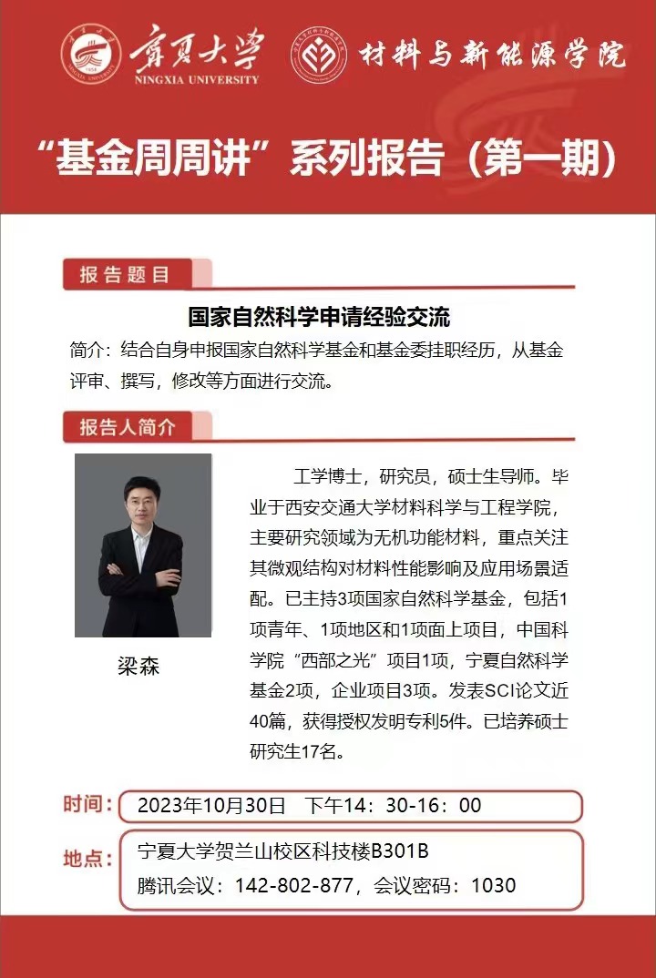 2023年10月30日下午,学院2023年“基金周周讲”系列报告(第一期)正式开讲。报告会以线上线下相结合的方式进行,性吧 梁森教授主讲,副院长李海波主持报告。