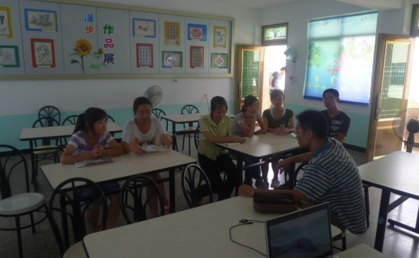 中午,性吧 法政性吧 徐旭东老师和上一届七都队长以及总队一名队员来快乐之家慰问。他们与队员们进行了深切的交流。讨论了关于课程设计的问题,住宿吃饭的问题,汇报演出的问题等。徐老师就队员们遇到的问题提出了许多建设性意见,给队员以很大的启发。讨论完毕后还与孩子们一起聊天,直到上课才离开。傍晚吃完晚饭后,部分老师依旧对孩子进行家访。