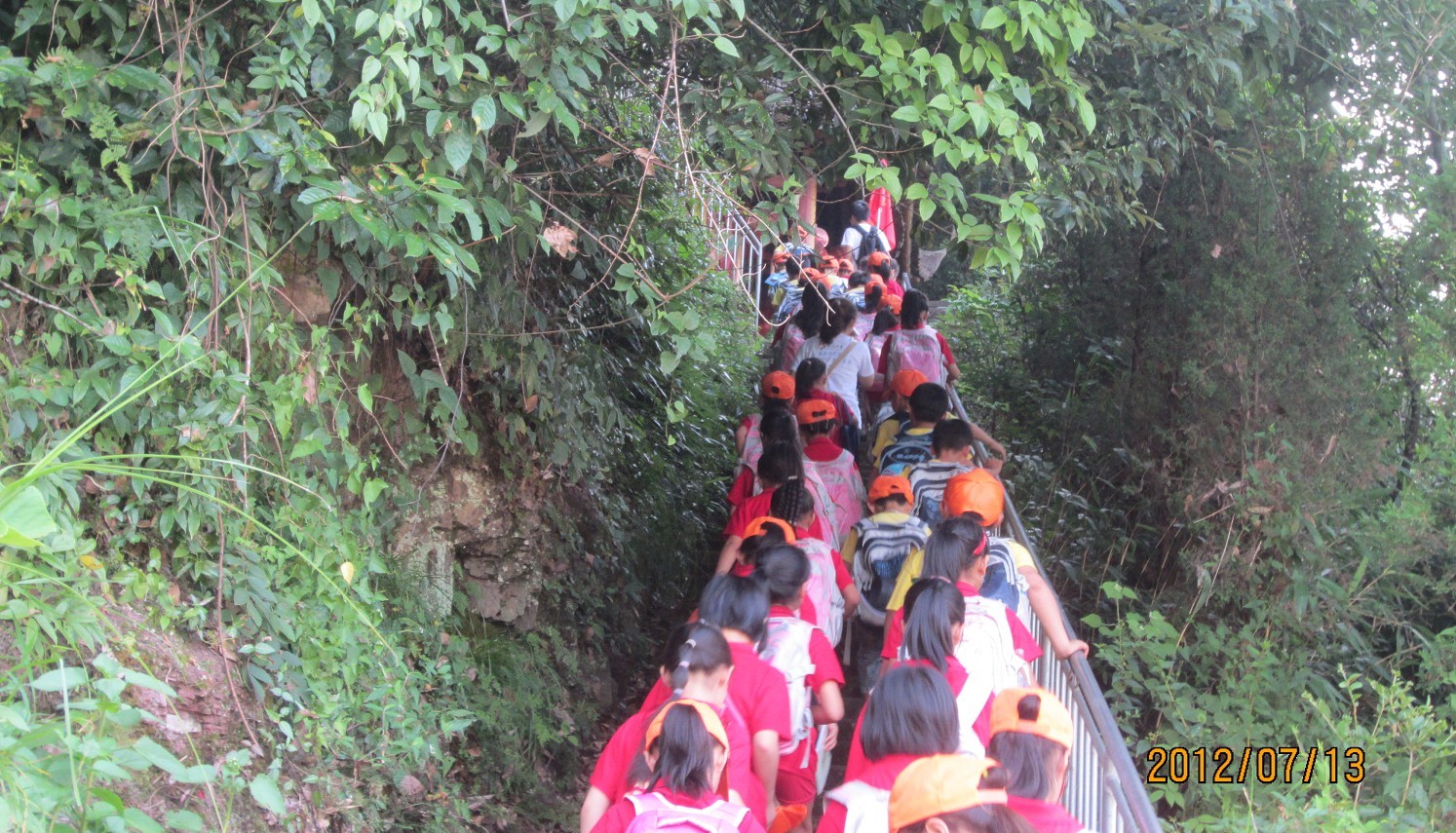 由于天气炎热,统一的穿着,迎着营旗,我们一大早便出发了。一路上同学们都是怀着极高的热情,迎着歌声向目的地出发。走走走走走……我们去郊游。虽然天气很热,但我们的热情比温度更高。慢慢走上楼梯后,到达目的地。稍作休息,开始进行景点的参观。而后,一部分同学进行写生,一部分同学进行游戏,各种快乐方式井然有序的进行着。将近10点,烈日开始焦灼我们,于是只能结束这难得的集体出游机会。依依不舍告别,安顿完每位同学,结束了一大早开始的活动。虽然昨天我们会上讨论了各种突发情况,也将药品准备齐全,但这群小家伙们特别能干,没有发生任何让我们措手不及的情况。