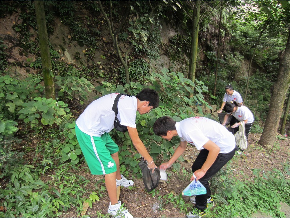 一路上,艳阳高照,但我们的环保热情高涨不下,大自然的美丽能让我们将烦恼和压力暂时忘却。一路上我们每人拿着一个黑色垃圾回收环保袋,几步一弯腰中寻着山路边的丢弃物并放入袋中。队员说"既健身,还能为环保做贡献,真是一举两得啊!"我们的行动也吸引了周边登山客的关注,不少登山的市民也加入到活动中来。大家的垃圾回收袋不知不觉都塞得满满的了。离开时,大家将不属于大罗山的垃圾废品收入袋中带走,用实际行动为我们的这次环保之旅画上一个圆满的句号。