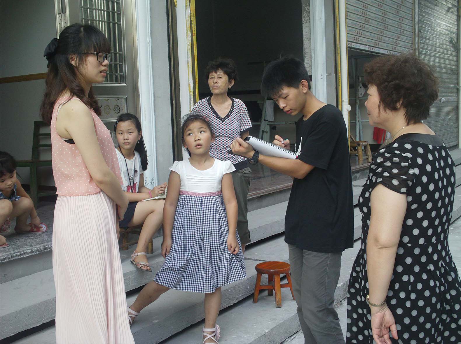 由于本队只有一个队员会温州话,为了更好地做好家访工作,我们将队员分为3队,一队针对家里能用普通话交流的去家访,一队针对家里只能说温州话沟通的进行家访,另外一小队留在学校打扫卫生等等。在家访过程中,我们主要针对留守儿童和家长的沟通情况,平时表现等进行调查。我们的目的在于让家长们更多地关注自己的孩子,了解自己的孩子,让孩子们能够被倾听,有倾诉烦恼的对象。在家访中,我们也会感动。有一个孩子从出生5个月后回来就再也没有见过父母,她是外婆养大的。外婆告诉我们说,她在做梦时梦到妈妈回来看她她就会好高兴,讲到这一点,外婆的眼睛里含着泪水,满脸心酸。我们的队员心里也是百感交集。