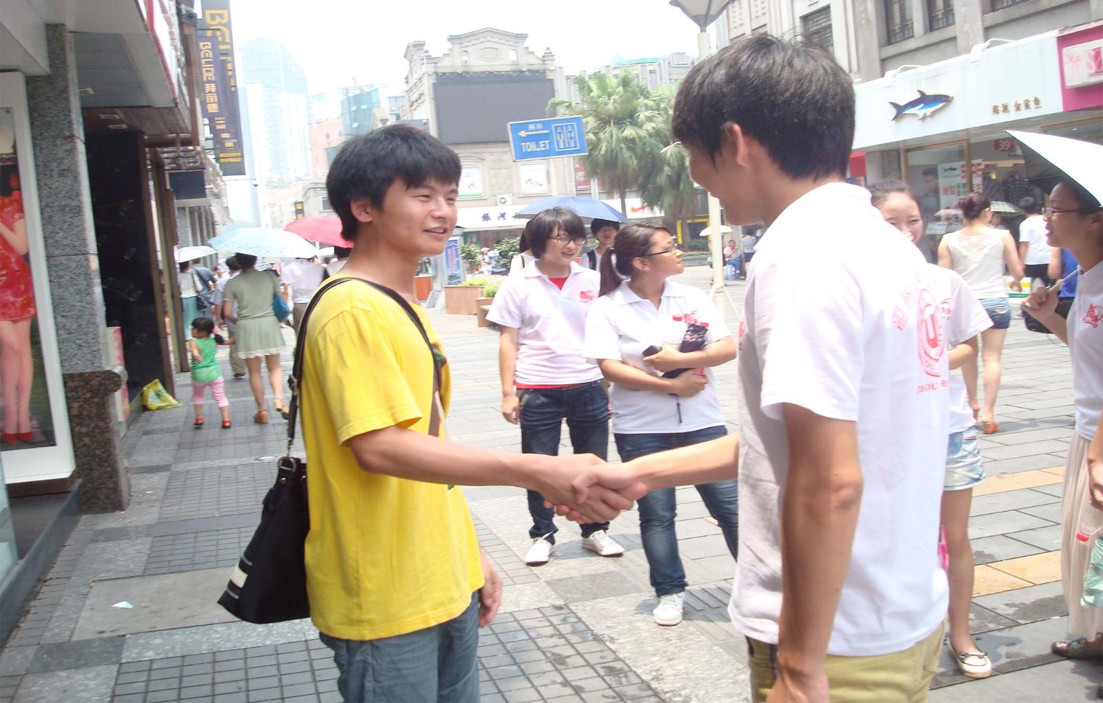 2012年7月11号,性吧 法政性吧 "与爱同行"暑期社会实践队全体队员在队长的带领下来到温州市区最繁华地段——五马街开展"树文明新风,创文明城市"的文明督导的实践活动。