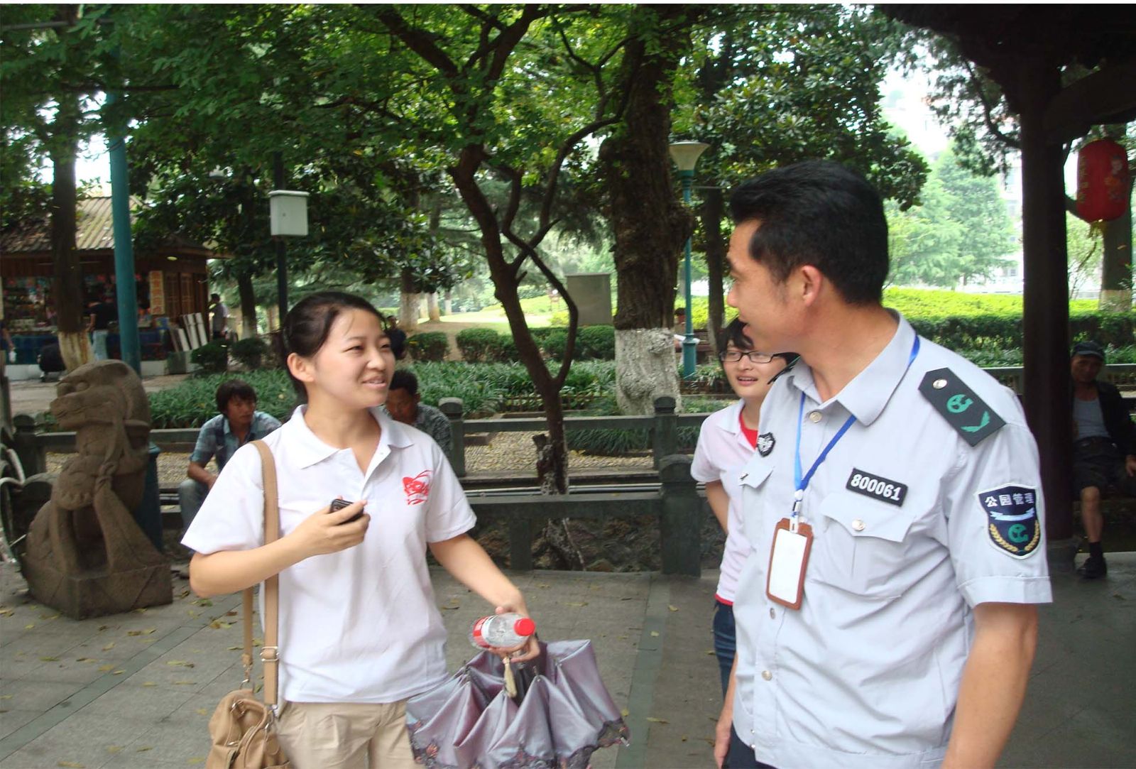 与爱同行暑期实践队的队员们组成的文明督导队来到了中山公园。在漫长的暑假来临之际,我们自愿地来到街头献出我们的一份力。
