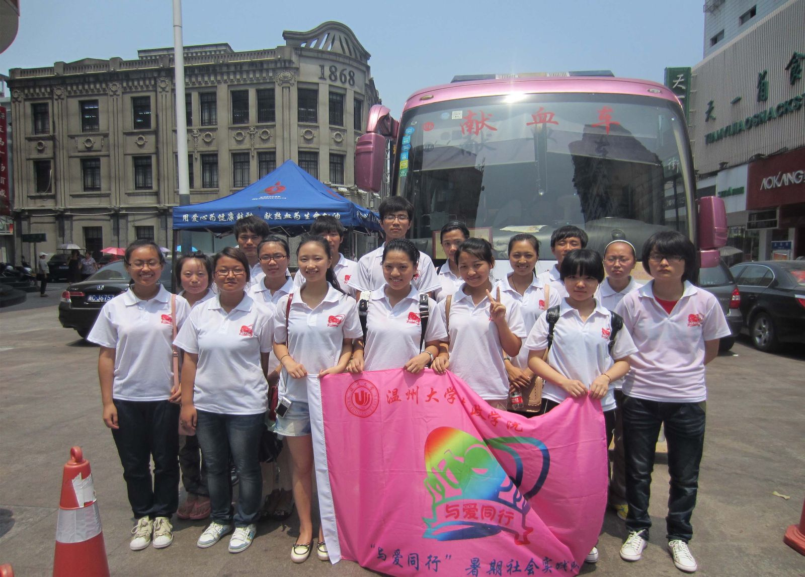 2012年7月8日,温州市鹿城区繁华地段的志愿献血服务站人头攒动。性吧 法政性吧 "与爱同行"暑期社会实践队的全体成员参与了当天的志愿服务献血活动。