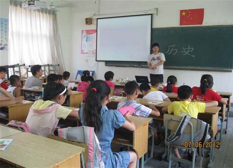 上午安排的是中华文化教育的课程内容,包括《弟子规》的讲解与中国汉字的结构分析。其中,中国汉字的结构分析作为今天的重点内容进行了讲解。实践队员经过事先精心备课,并且在课程中设置了汉字部首列举小组比拼、偏旁拼字游戏等互动环节,活跃了课堂氛围,并让营员们积极开动脑筋,学会"举一反三"地迁移思考。下午的中国近代史简介通过播放视频、PPT讲解、爱国歌曲欣赏等多种形式让大家深切体会到"落后就要挨打",营员们一张张稚气未脱的脸庞上显现出了坚毅的表情。