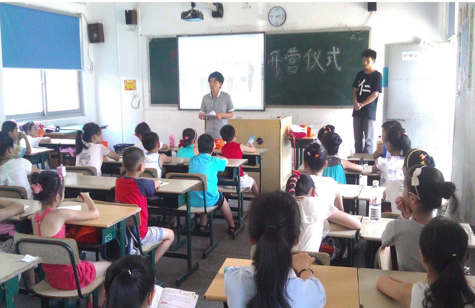 我们分营的开营仪式在9:00隆重举行,丽岙一小大队辅导员林达老师发表了重要讲话,他强调了活动中的安全纪律问题,并代表学校向我们表示感谢。全体队员在本次开营仪式中进行了实"我是谁"为主题的爱国主义教育,通过我国的历史、国土面积以及人口,使每一位参加快乐营的孩子深刻的了解到我是中国人的含义。上午,践队指导老师徐旭东热情赶来慰问我们实践队队员,交流实践中的一些问题。接下来我们迎来我们的第一节课手语,在我们全队的指引下,小朋友们都兴高采烈地参与其中,个别同学还主动要求上台为大家展示学习成果。然后进行了趣味体育课。上午十一三十分准时放学。下午两点,徐温娴进行了主题为"我爱我乡"的爱乡教育,通过孩子们的丰富想象力与我们的正确引导,使孩子们心中的家乡呈现在一张张画纸上。晚上,部分队员对个别孩子进行了家访。从中了解了侨界留守儿童的现状,并记录在案。
