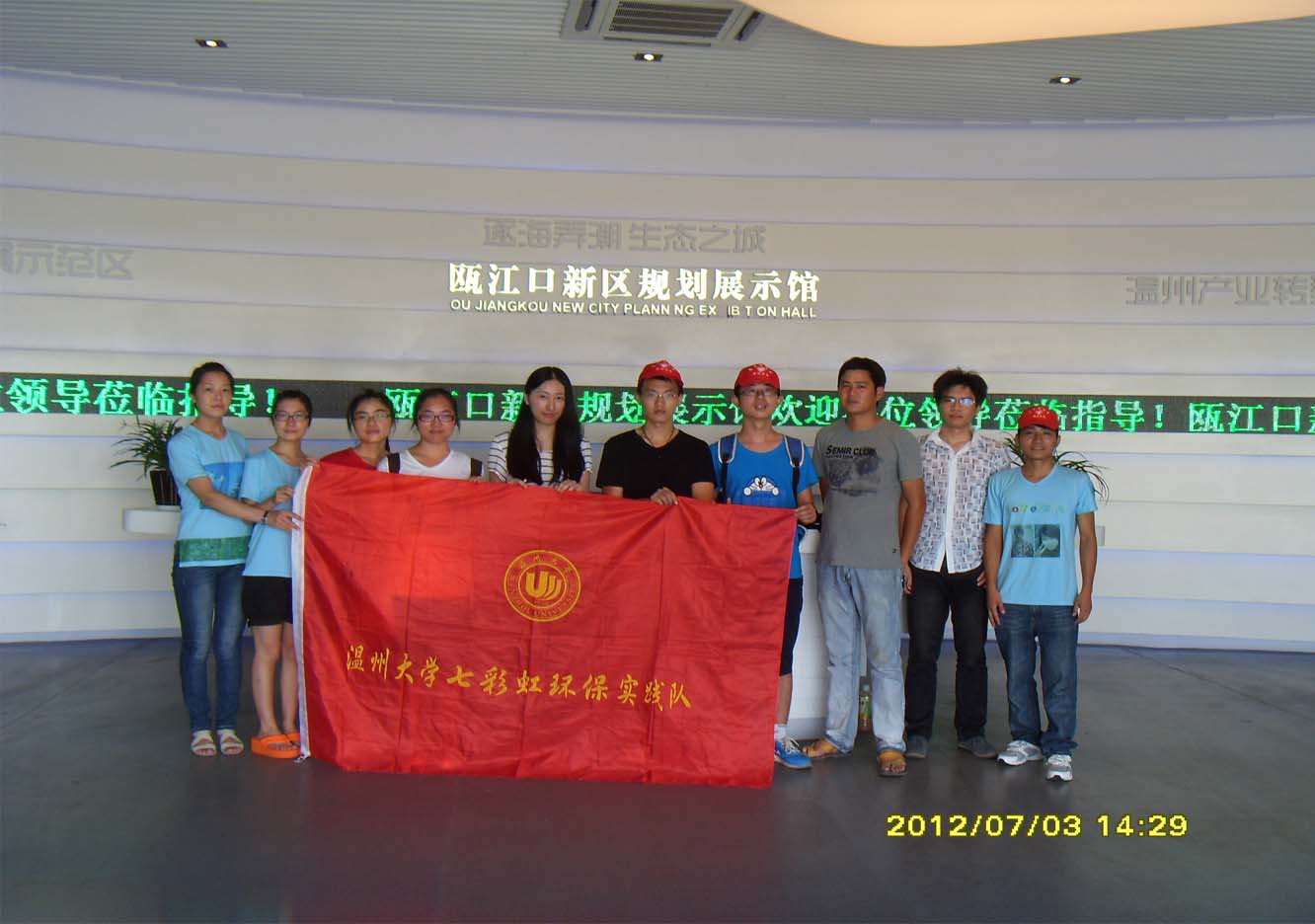 首先,为了解瓯江口施工概况及其宏伟蓝图,队员们一同到达瓯江口新区规划展示馆,并由一位讲解员带领队员们参观。馆内一楼陈列了各种五光十色的规划蓝图及建设模型,包括用地功能规划,生态系统规划,城市布局规划等,紧紧围绕"三生融合"这一主题。队员们就生态规划与讲解员积极互动,更是深层次地了解其生态发展。接着,讲解员带领队员们来到二楼,我们不仅参观灯光前景图纸,还看了瓯江口规划宣传片,看罢心情激动难抑,十分期待。参观完展馆,林先生带着队员们沿堤造访了瓯江口海涂围垦工程。林先生告诉队员们,南围堤左侧均已完成围垦并准备开发,其中部分用于物流业,部分用于建造住宅。随后,队员们踏上了部分海涂已完成围垦的东围堤。