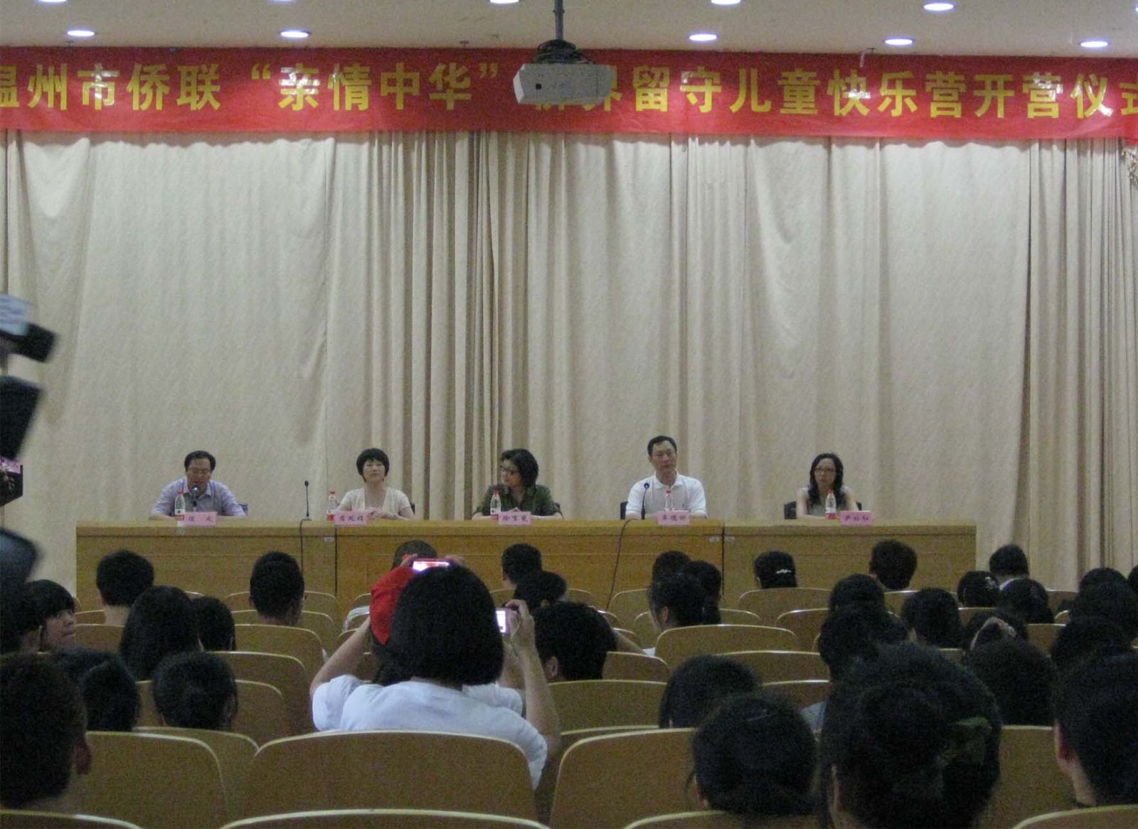 7月2号上午九点,温州市侨联"亲情中华"侨界留守儿童快乐营在性吧 会展中心雁山厅举行了盛大的开营仪式。在开营仪式中,温州市侨联党委副书记应凤娟书记为我们说明了本次组织的形式及规模,强调了在这个过程中我们所需的责任、合作、安全意识;性吧 副书记牟德刚老师也对本次活动的举行意义做出了强调。整个过程中,同学们认真听讲,并为本次活动做好充分的心理准备。